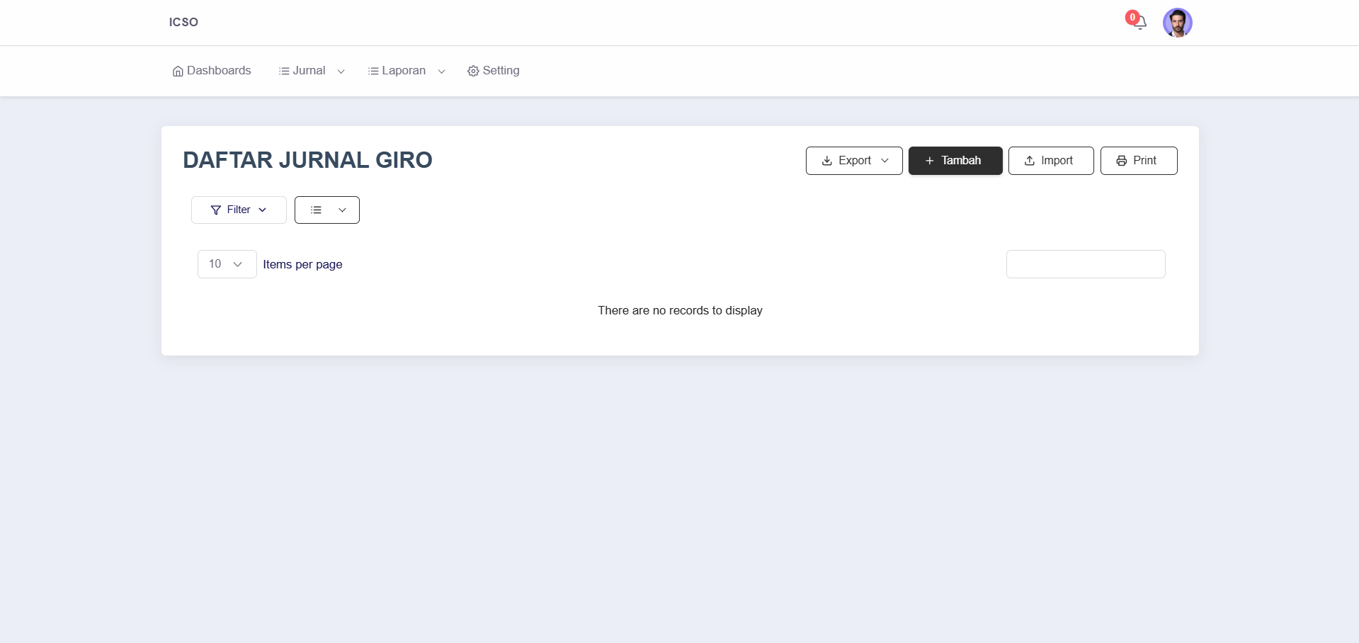 Untuk memudahkan pelaporan dan analisis data lebih lanjut, halaman Jurnal Giro menyediakan fitur untuk mencetak laporan secara langsung atau mengekspor data ke dalam berbagai format digital.