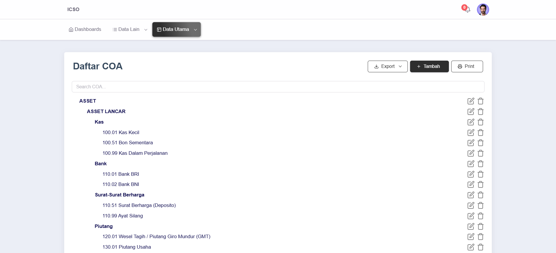 COA di ICSO disusun secara hierarkis (bertingkat) untuk memudahkan pengelompokan laporan keuangan (Neraca dan Laba Rugi).